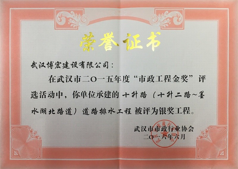 2015年度市政工程銀獎(十升路道排)