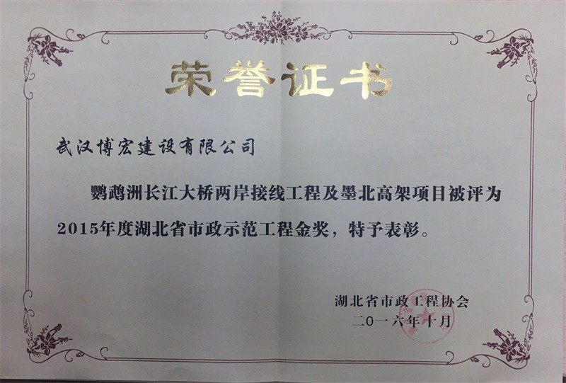 鸚鵡洲長江大橋兩岸接線工程2015年度湖北省市政示范工程金獎鸚鵡洲接線2015省市政示范工程金獎