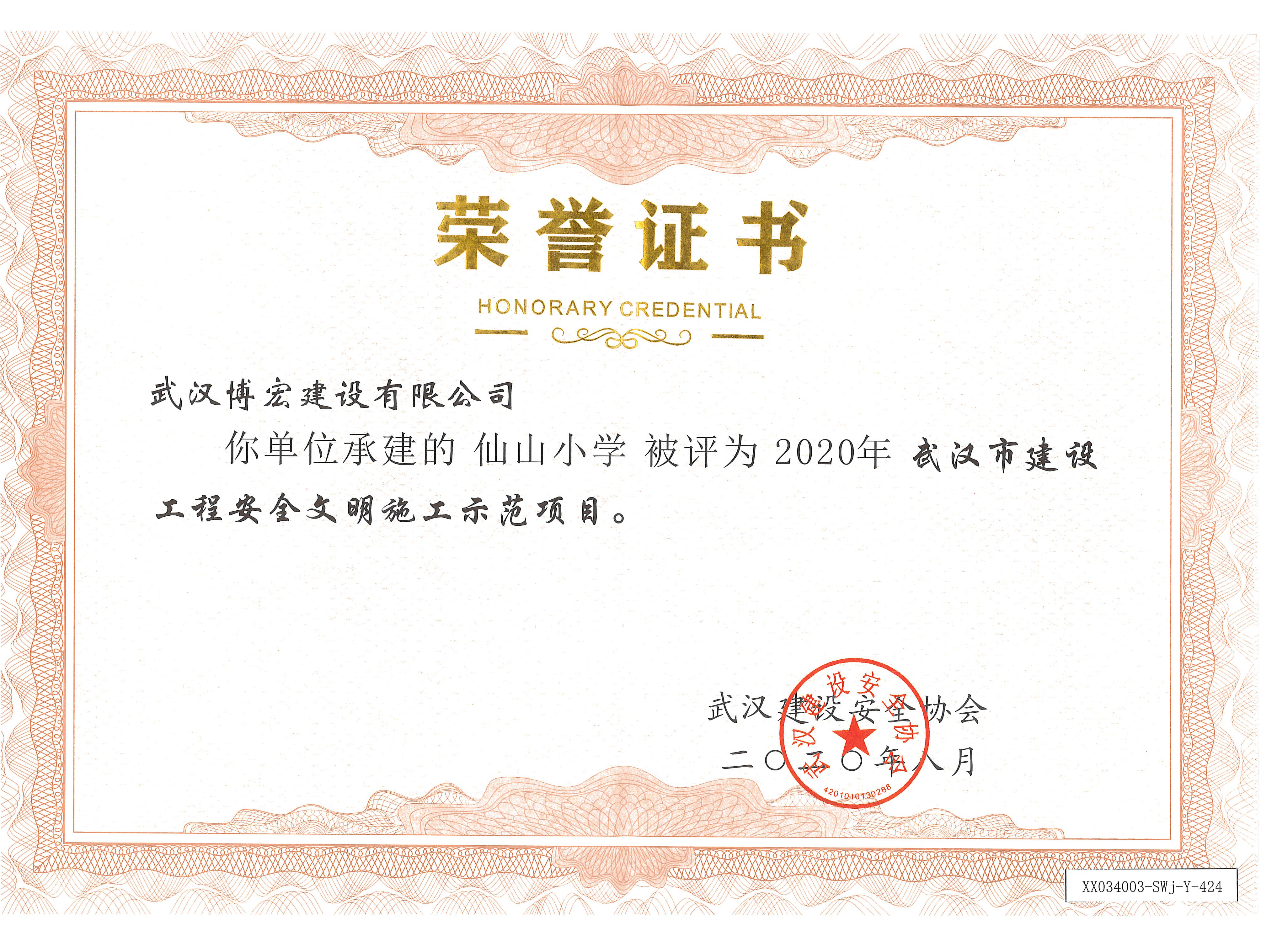 2020年武漢市建設(shè)工程安全文明施工示范項(xiàng)目(仙山小學(xué))