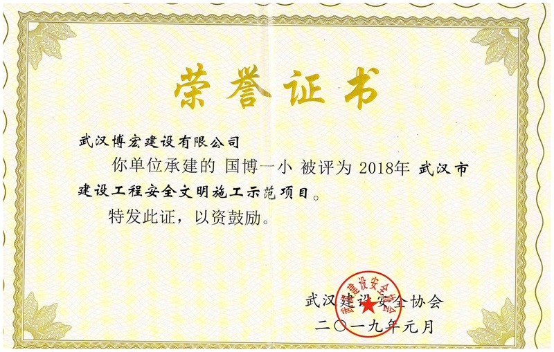 武漢市建設(shè)工程安全文明施工示范項(xiàng)目(國(guó)博一小)