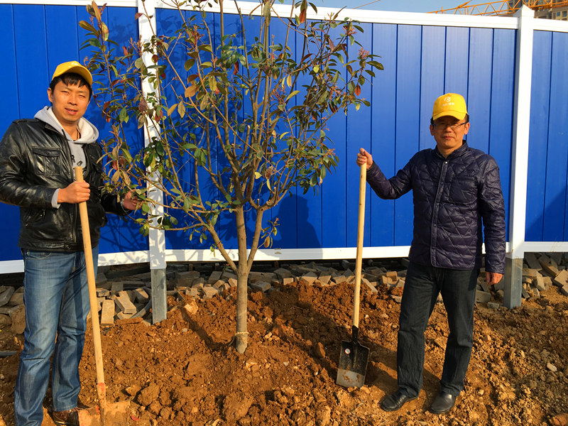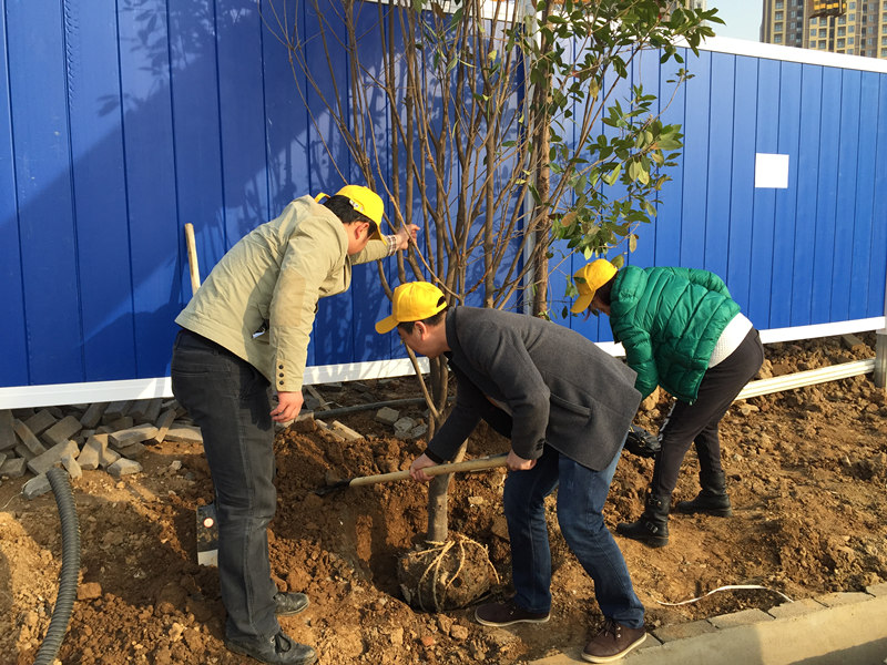 早春時(shí)節(jié),寒意猶在,但擋不住博宏建設(shè)志愿者“共建綠色家園,營(yíng)造優(yōu)美環(huán)境”的熱情。3月12日上午,博宏建設(shè)志愿者一行40余人,在公司黨支部書(shū)記的帶隊(duì)下,扛著鐵鍬,前往正在實(shí)施湖泊整治的墨水湖邊。按照事先準(zhǔn)備的種植規(guī)范,志愿者們短短一上午便完成20余棵紅葉石楠、30余棵水杉和一筐麥冬、鳶尾花的種植任務(wù)。