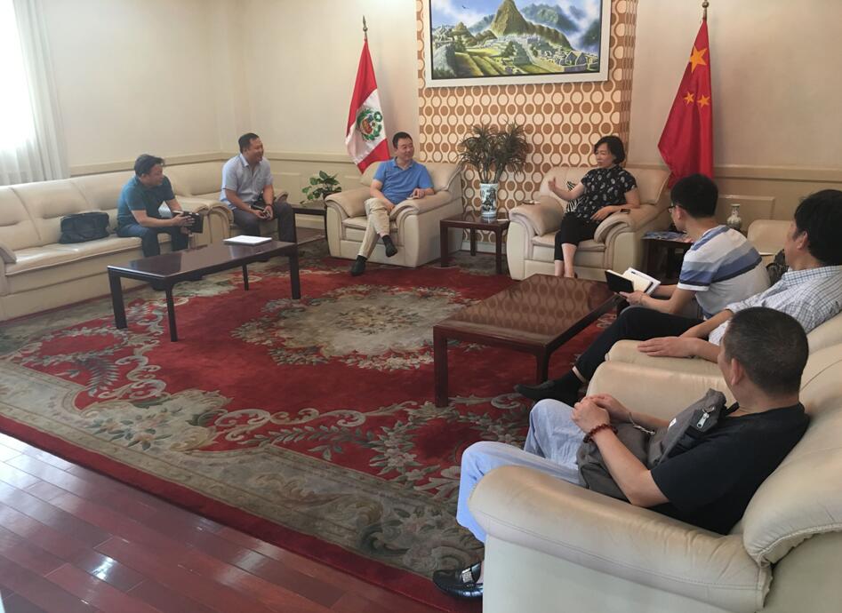 考察團(tuán)隊會見中國駐秘魯大使館經(jīng)濟(jì)商務(wù)參贊處郝沁梅參贊(右四)
