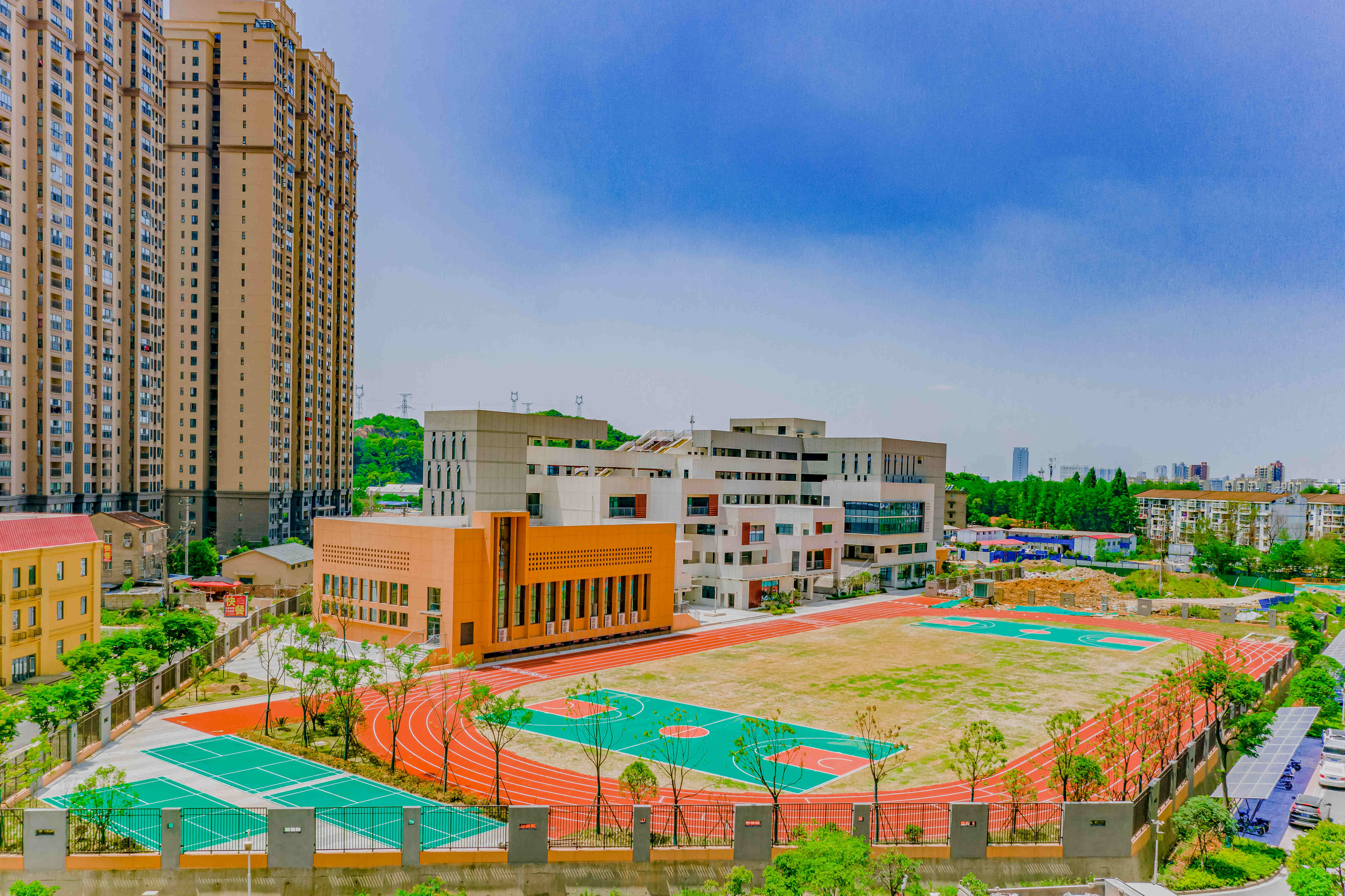 你們有煥然一新的校園、寬敞明亮的教室、功能多樣的空間、紅綠相間的操場(chǎng),更舒適、更安全、更現(xiàn)代、更美麗,帶你們一起走近……
