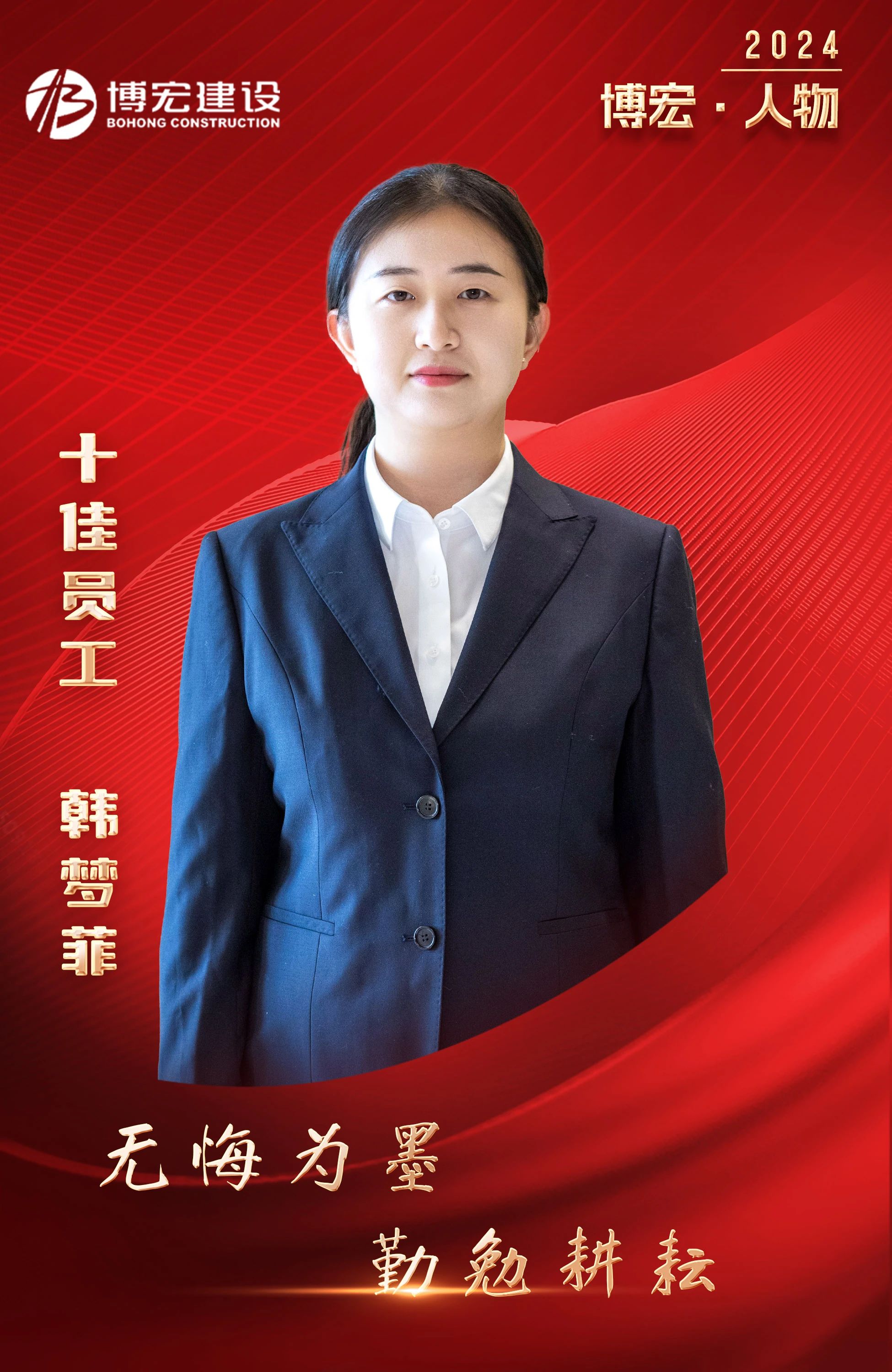 追溯過往,走過的路都是歷練;暢想未來,追風(fēng)趕月從未停歇。正是她穩(wěn)扎穩(wěn)打的個性,讓她在短短兩年的時間,成長為獨當(dāng)一面的業(yè)務(wù)骨干,因出色的工作能力和吃苦耐勞的精神,獲評博宏建設(shè)集團2023年度“十佳員工”。