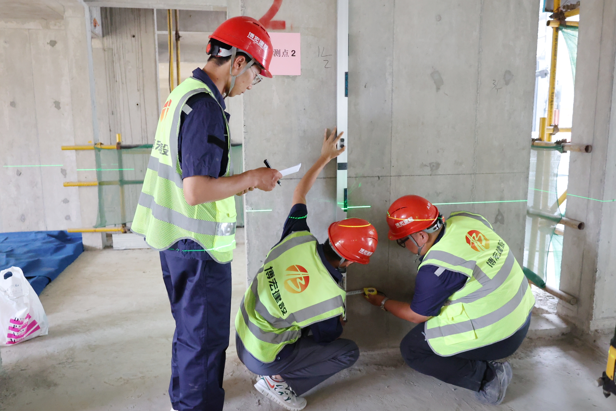 為響應(yīng)“質(zhì)量月”活動號召,增強(qiáng)全員質(zhì)量意識,促進(jìn)公司質(zhì)量全面提升,9月26日下午,博宏建設(shè)集團(tuán)2024年“質(zhì)量月”實測實量技能比武大賽在國博D12地塊項目順利舉行,博宏建設(shè)集團(tuán)總經(jīng)理助理李暉,質(zhì)量管理部部長姜昊,各項目部質(zhì)檢員、施工員共計五十余人參加活動。本次活動特別邀請到漢陽市政、深圳瑞捷、匯科檢測等單位專業(yè)代表作為裁判。